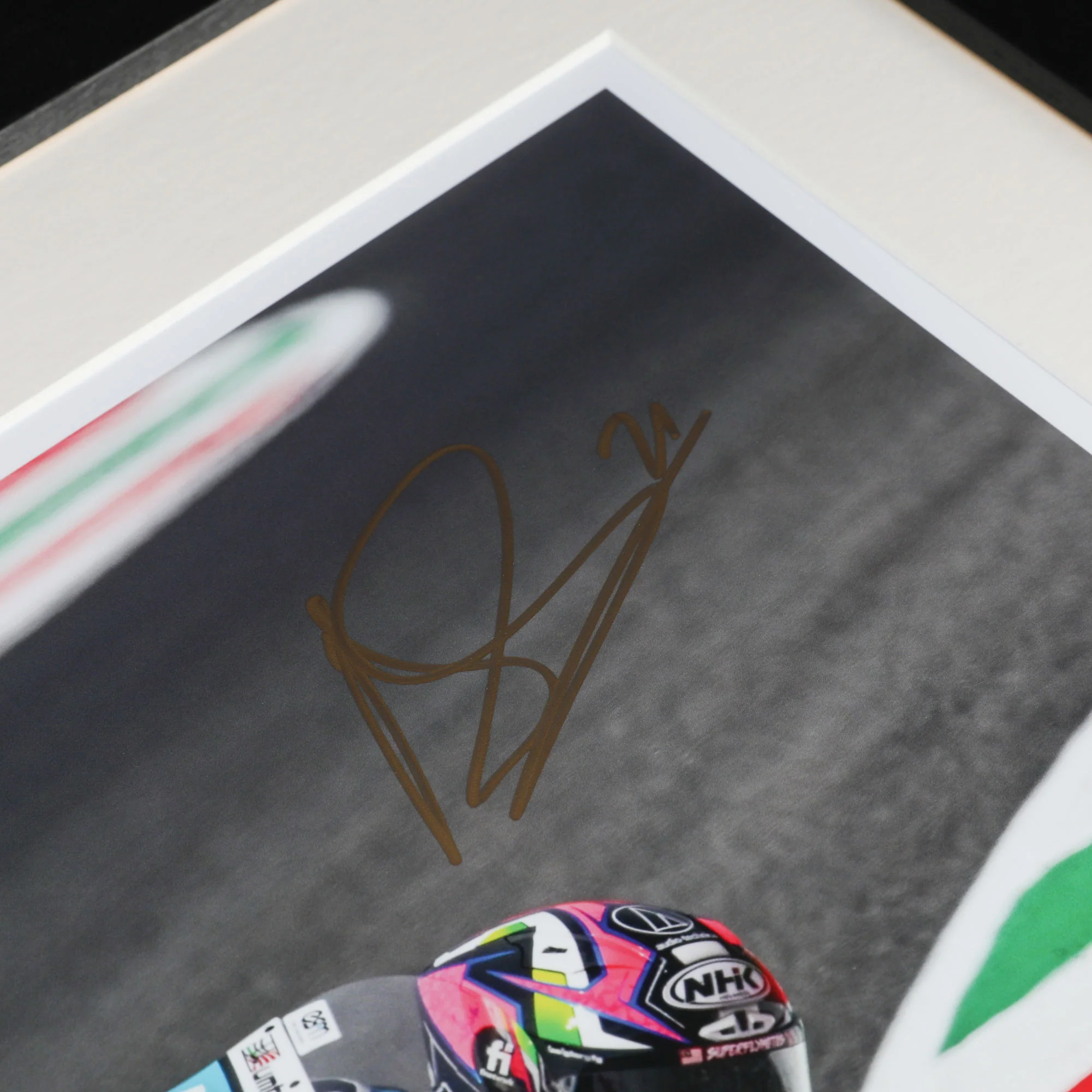 Available in limited quantities, these signed photos are an unmissable tribute to the Moto2™ rider. Ensure you own a piece of the history that will forge a future great with this piece. However, it is essential you are quick as these photos will not be around for long.