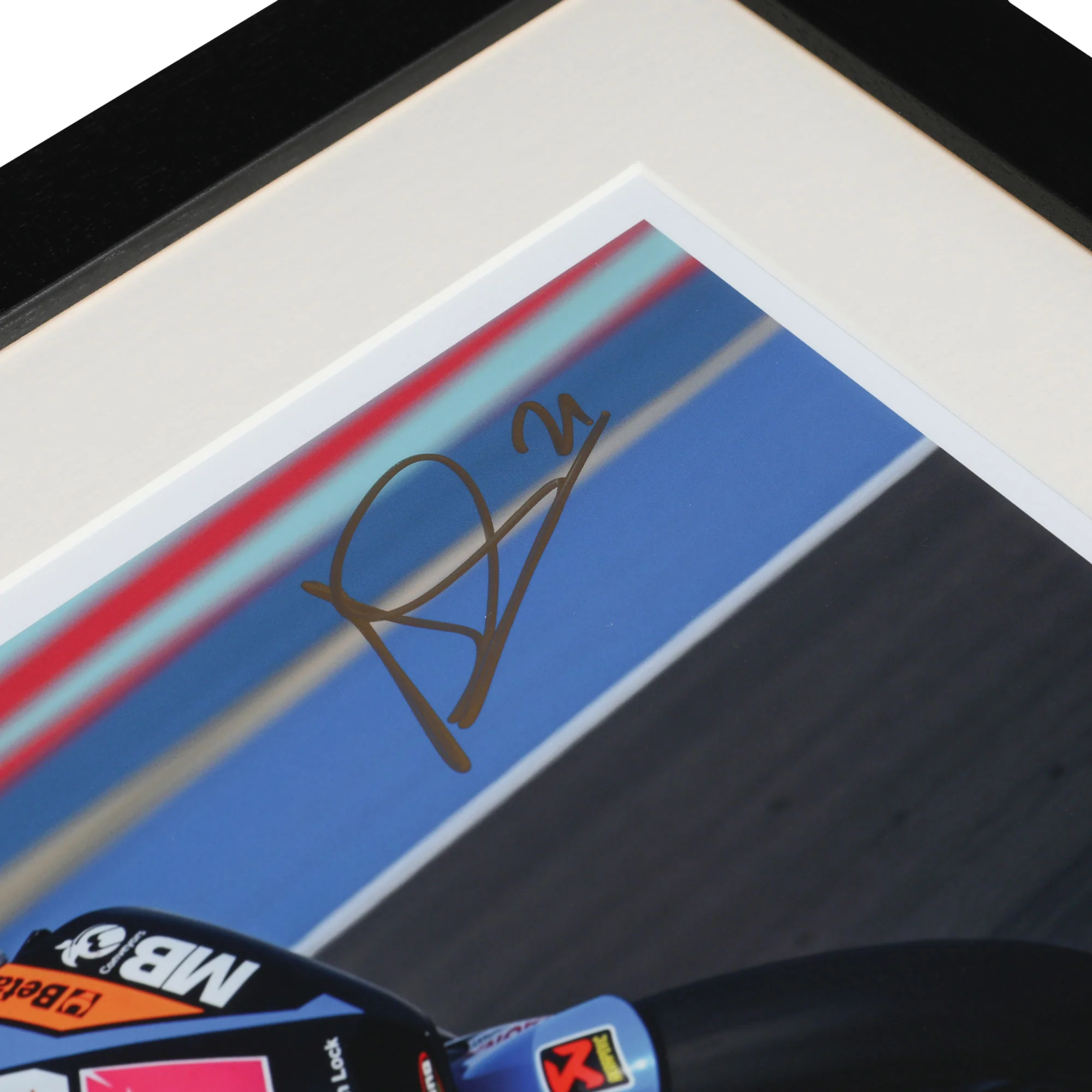 Available in limited quantities, these signed photos are an unmissable tribute to the Moto2™ rider. Ensure you own a piece of the history that will forge a future great with this piece. However, it is essential you are quick as these photos will not be around for long.